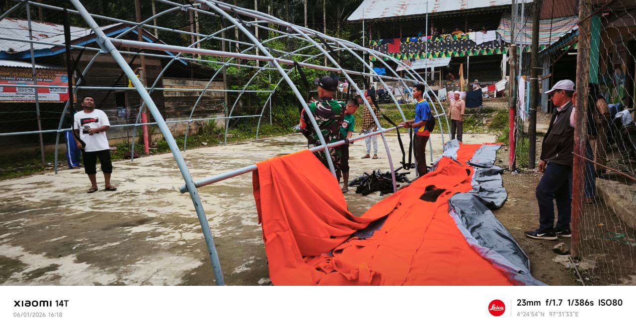 Tenda Peleton didirikan sebagai tempat belajar sementara siswa/siswi Aceh Timur yang terdampak bencana-BNPB-