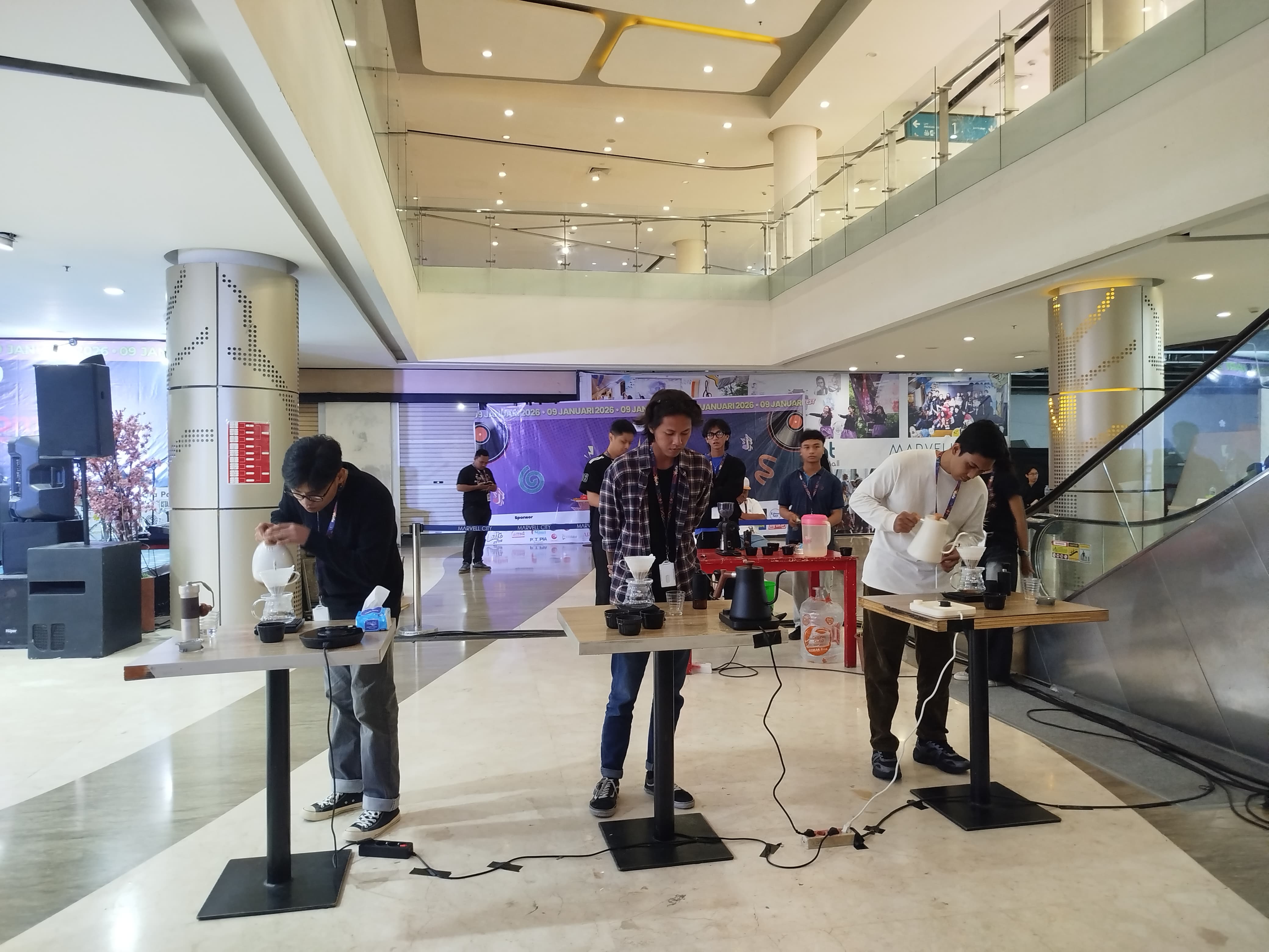Beberapa peserta mengikuti kompetisi Manual Brew yang berlangsung sebagai rangkaian acara Syncroma Fest di Marvel City Mall.-Sindhy Nurhaliza-Harian Disway
