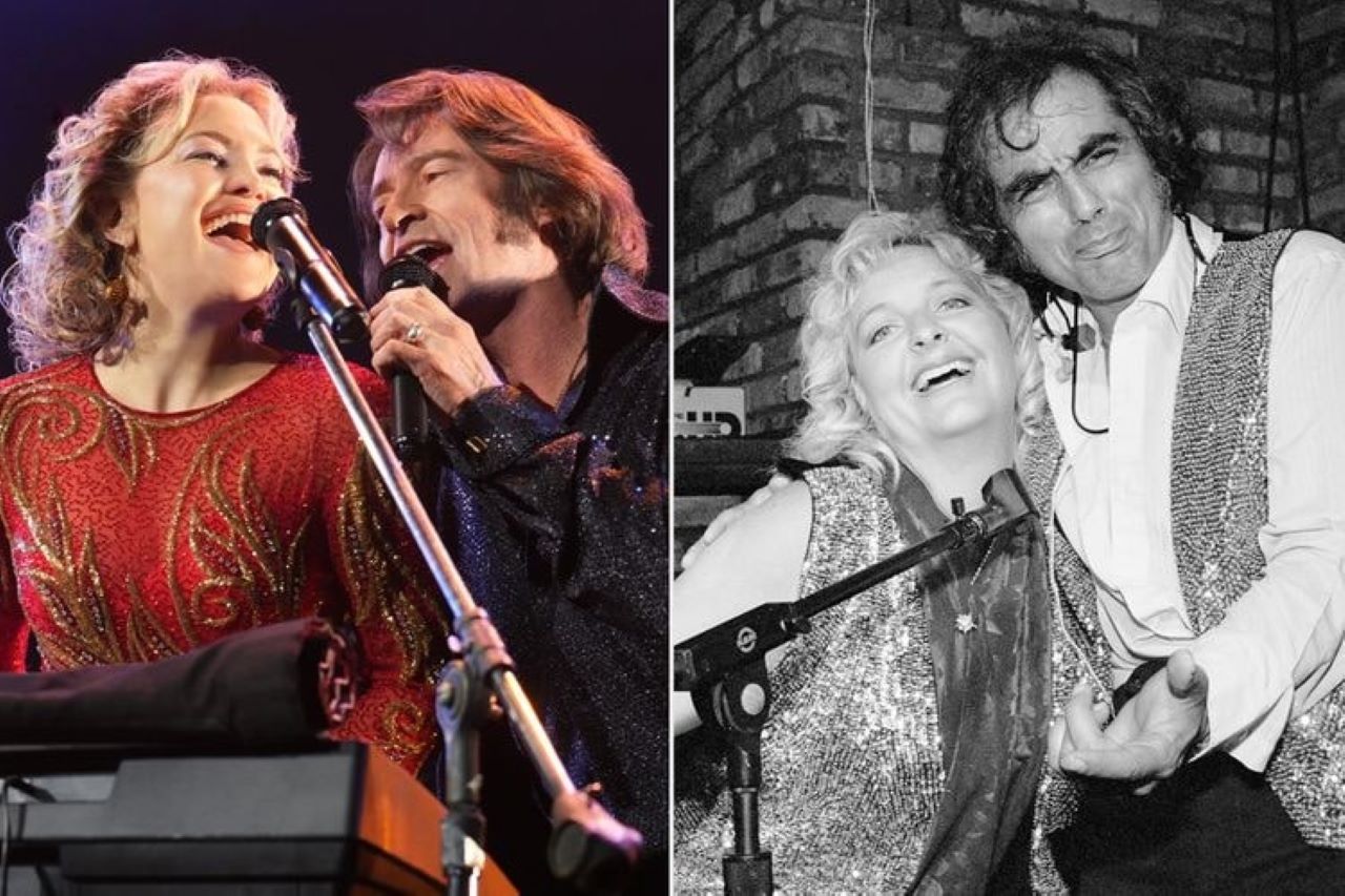 KATE HUDSON dan Hugh Jackman (kiri) memerankan pasangan Claire dan Mike Sardina (kanan) dalam Song Sung Blue.-Sarah Shatz/Focus Features, Jim Newberry/Alamy-People