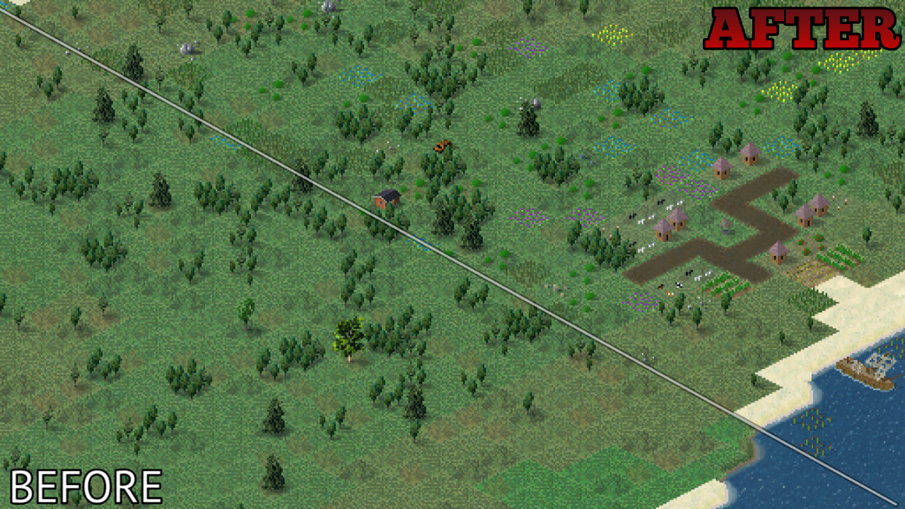 Dengan plug-in ini pemain tak perlu repot membuat alam, karena nantinya terain kosong akan terisi sendiri dengan pohon dan sumber daya alam. --TheoTown map