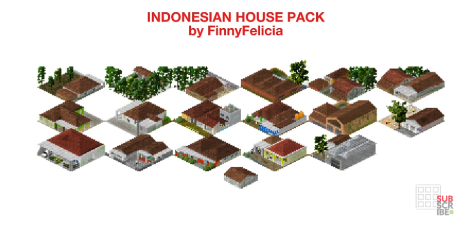 Rumah-rumah bergaya Indonesia yang bisa dipasang di TheoTown. --youtube