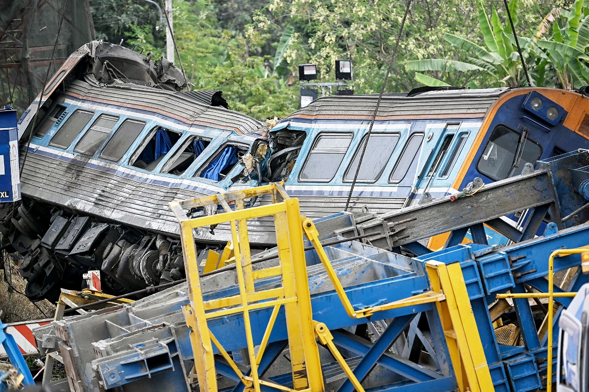 BANGKAI KERETA yang terbakar setelah kejatuhan crane di Thailnad, 14 Januari 2026.-LILLIAN SUWANRUMPHA-AFP-