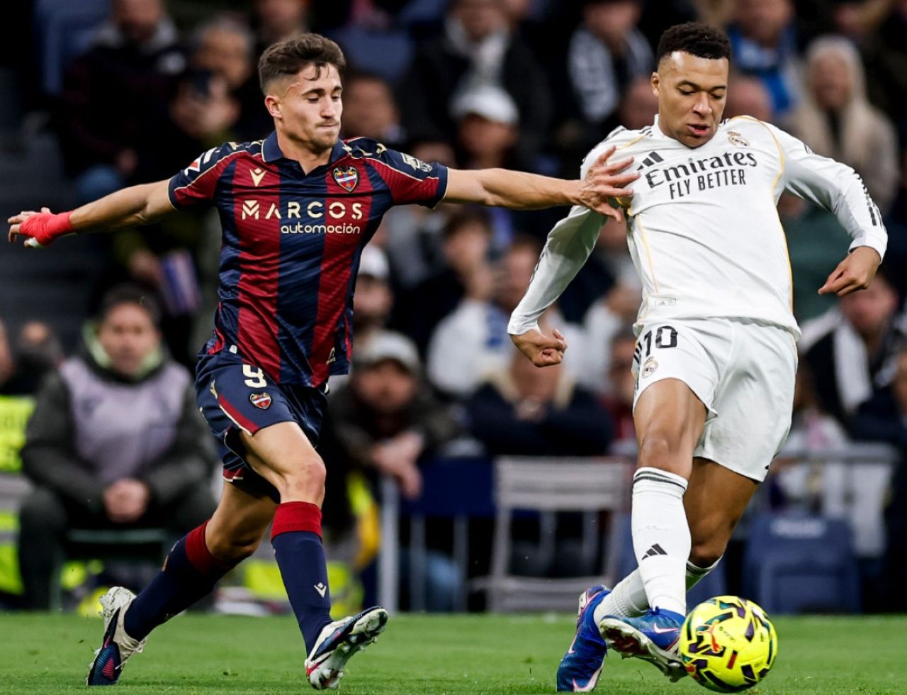 Duel Ivan Romero (kiri) dan Kylian Mbappe (kanan) dalam laga Real Madrid vs Levante, La Liga 2025/2026 pekan ke-20, Sabtu 17 Januari 2026--@Realmadrid-x