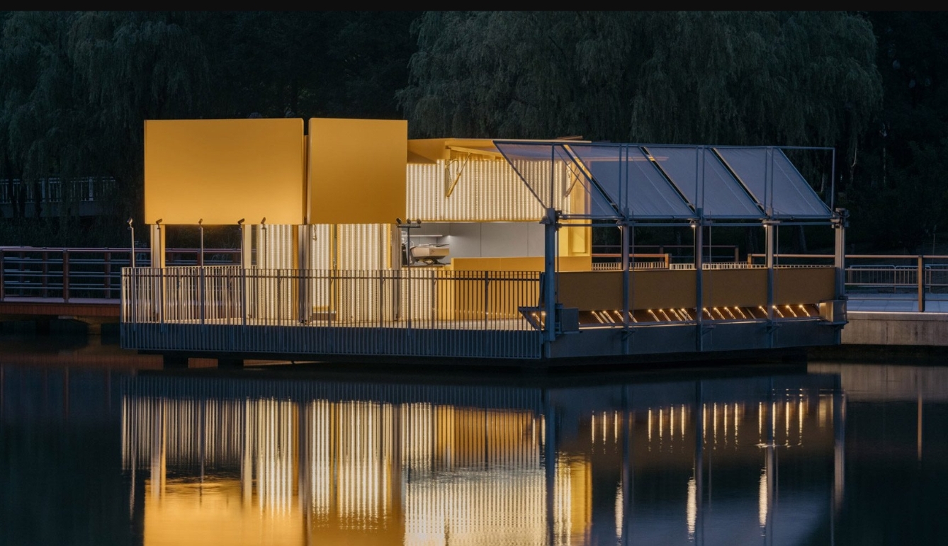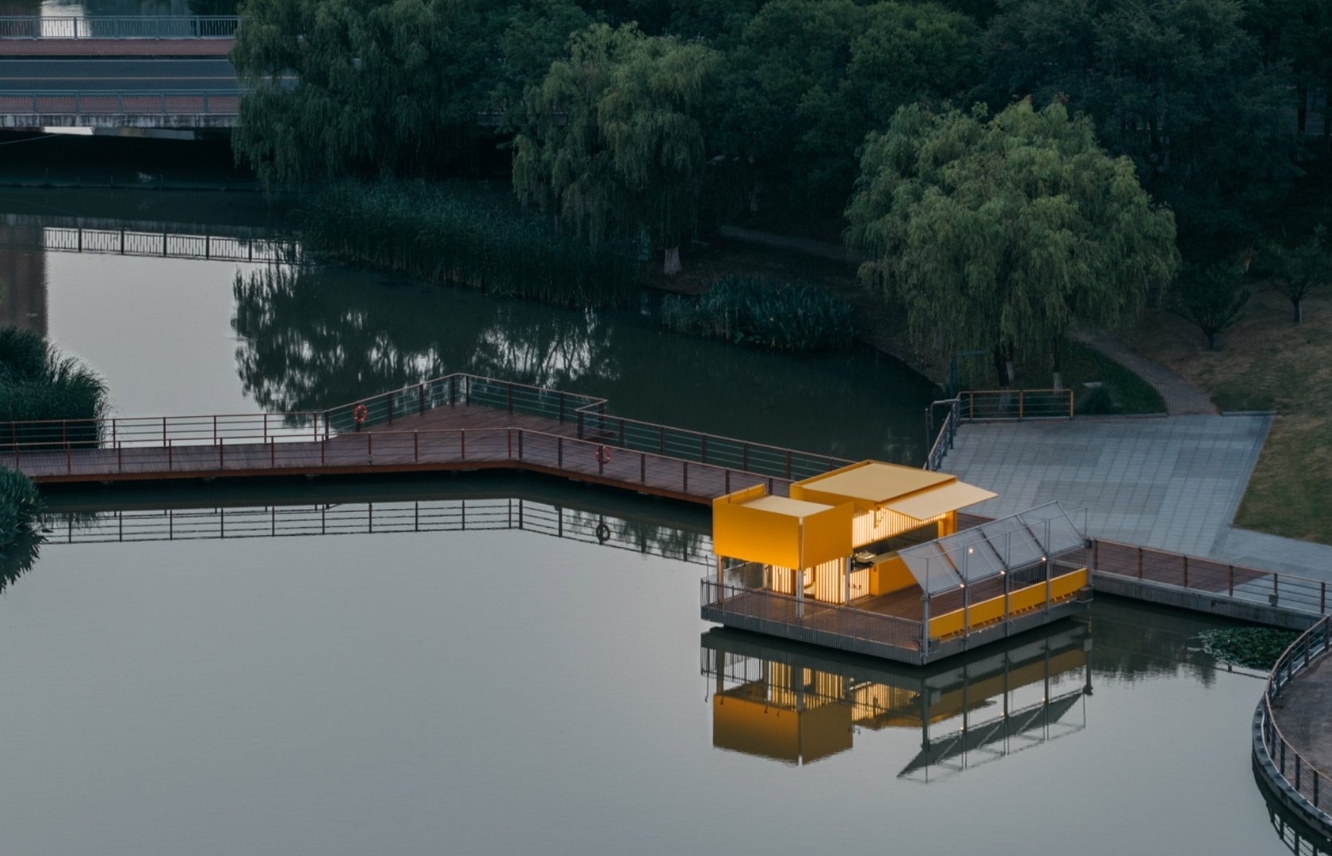 Kafe itu berlokasi di kawasan taman kota tepi danau di Kunshan, Tiongkok. Menghadirkan pendekatan arsitektur ringan dan adaptif. Menyatu dengan ritme kota.