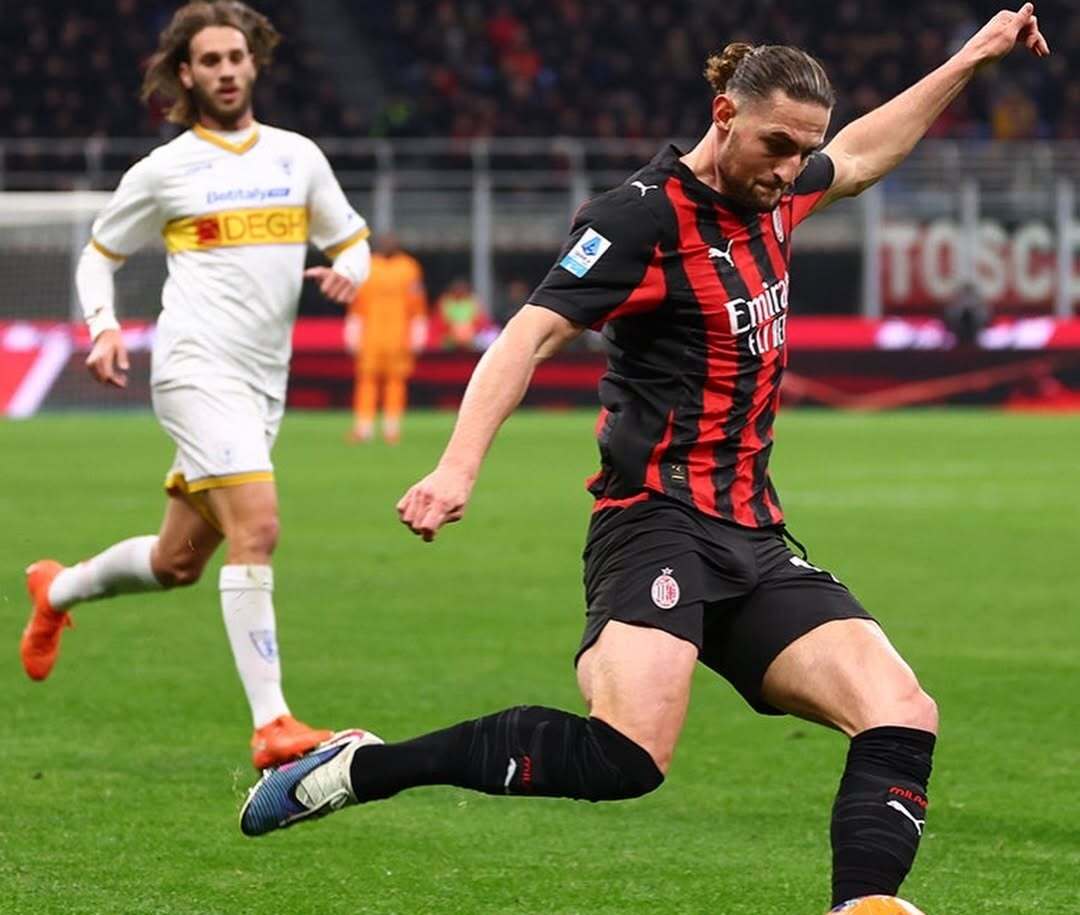 Momen gelandang AC Milan, Adrien Rabiot, dalam laga kontra Lecce. Senin, 19 Januari 2026.--Instagram @acmilancast