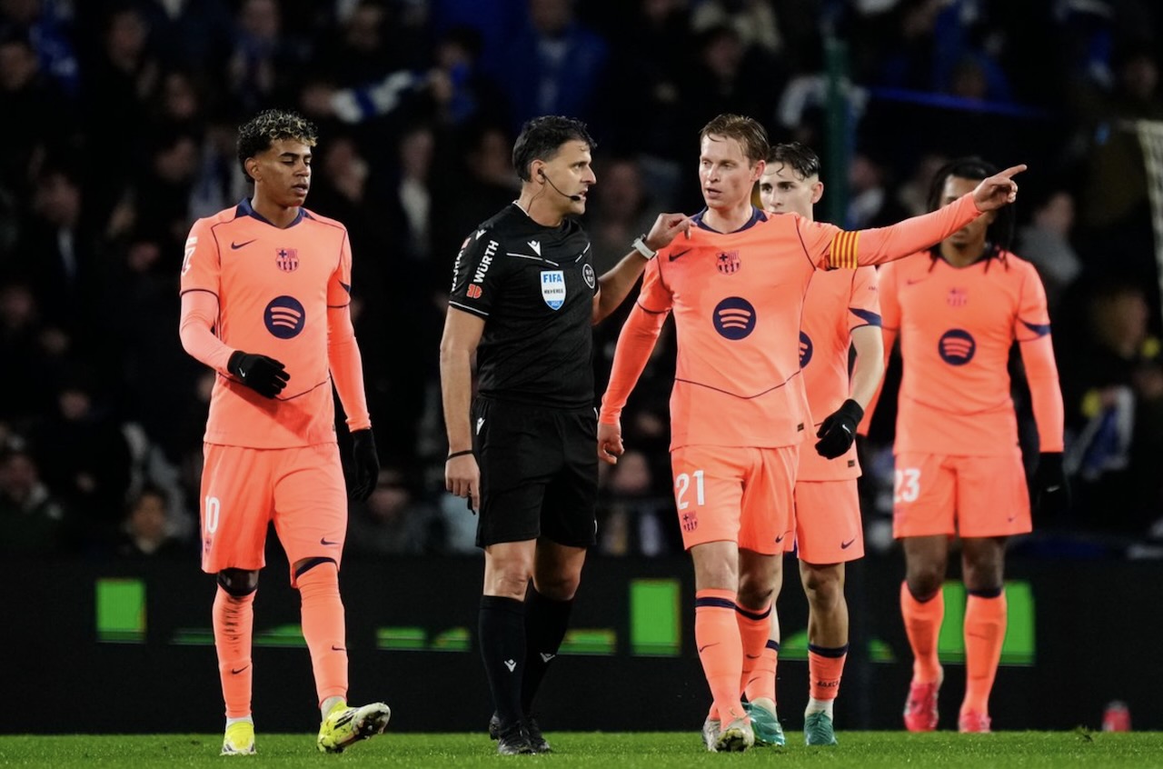 Wasit Gil Manzano dalam laga Real Sociead vs Barcelona menganulir 2 gol Blaugrana dalam laga La Liga 2025/2026 pekan ke-20, Senin 19 Januari 2026--@BarcaUniversal-X