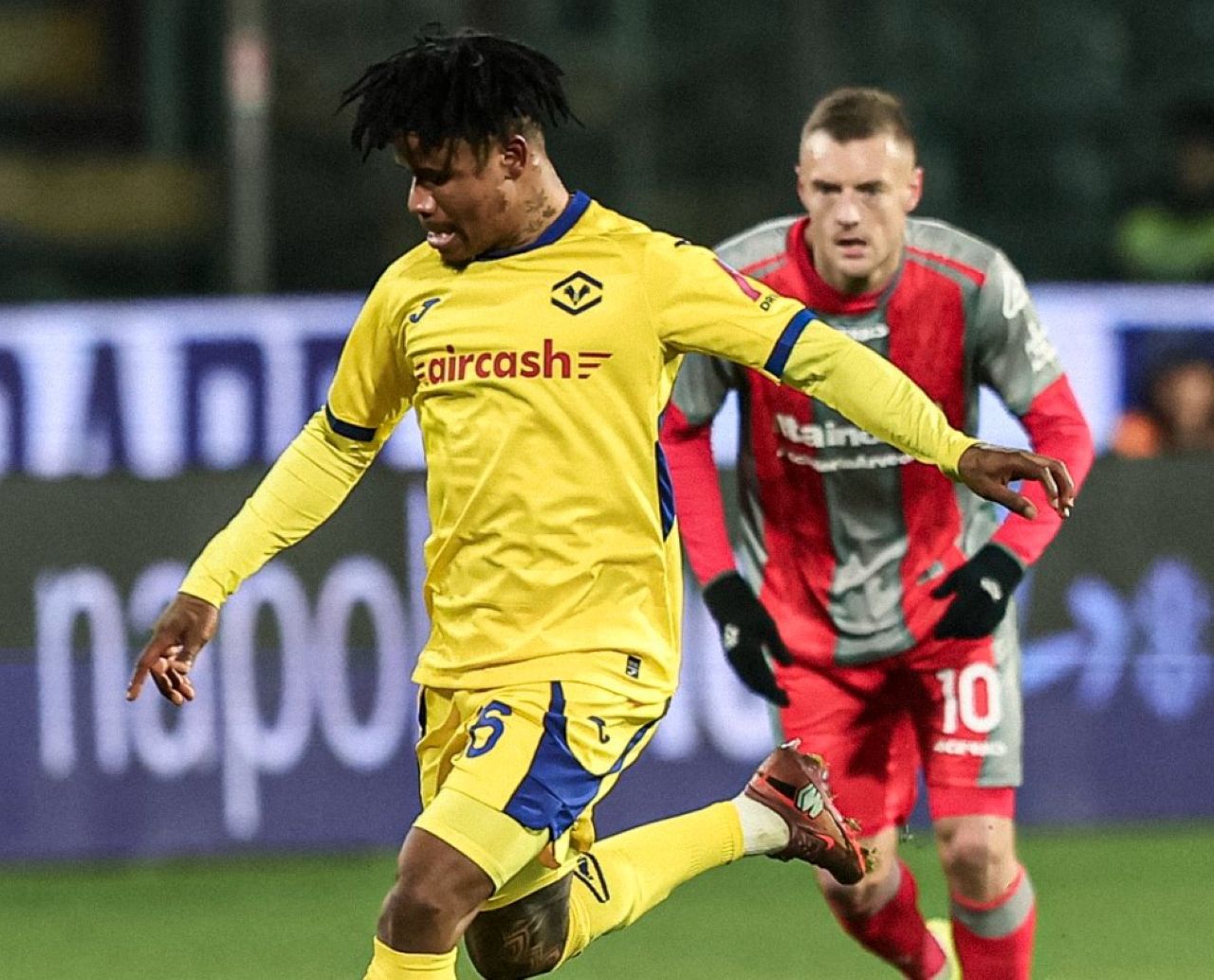 Aksi Enzo Ebosse dalam laga Cremonese vs Hellas Verona, Serie A 2025/2026 pekan ke-21, Selasa 20 Januari 2026--@HellasVerona-X