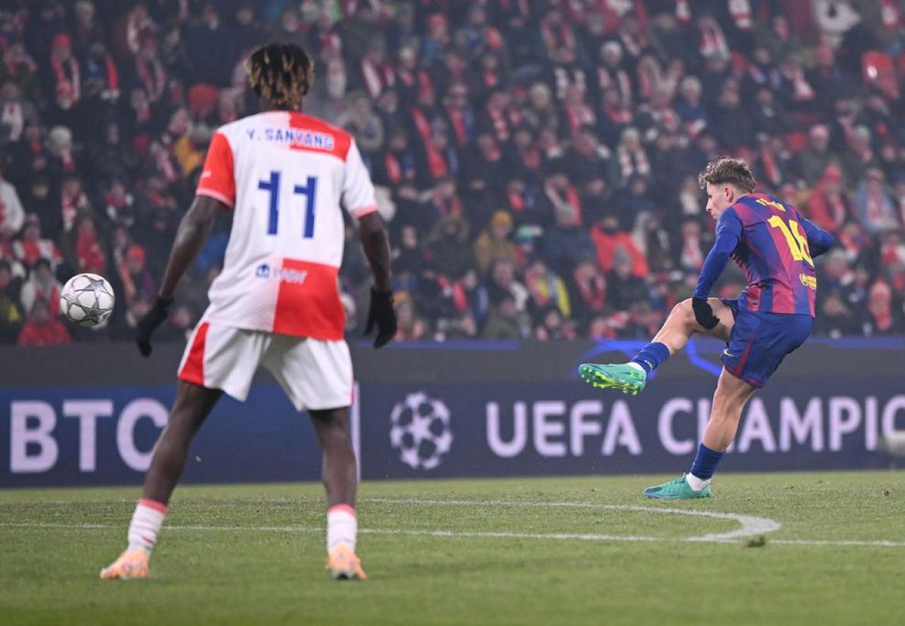 Gol Fermin Lopez buat Barcelona unggul 2-1 atas Slavia Praha dalam laga Liga Champions 2025/2026 matchday ke-7, Kamis 22 Januari 2026--Uefa.com