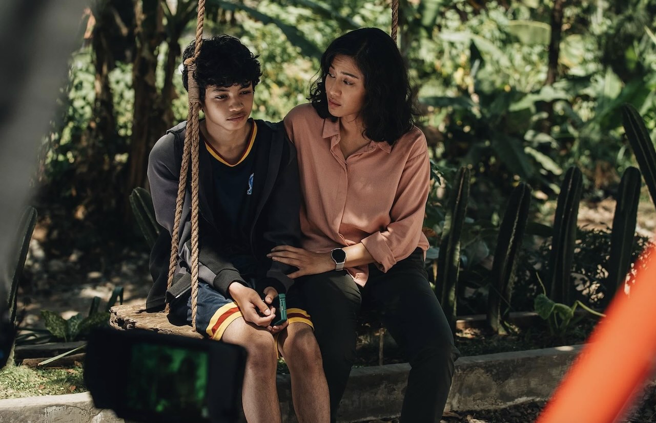 Sinopsis Esok Tanpa Ibu, ketika Dian Sastro jadi bunda versi AI. Foto: Dian Sastro (kanan) dan Ali Fikry dalam salah satu adegan Esok Tanpa Ibu.-BASE Entertainment-
