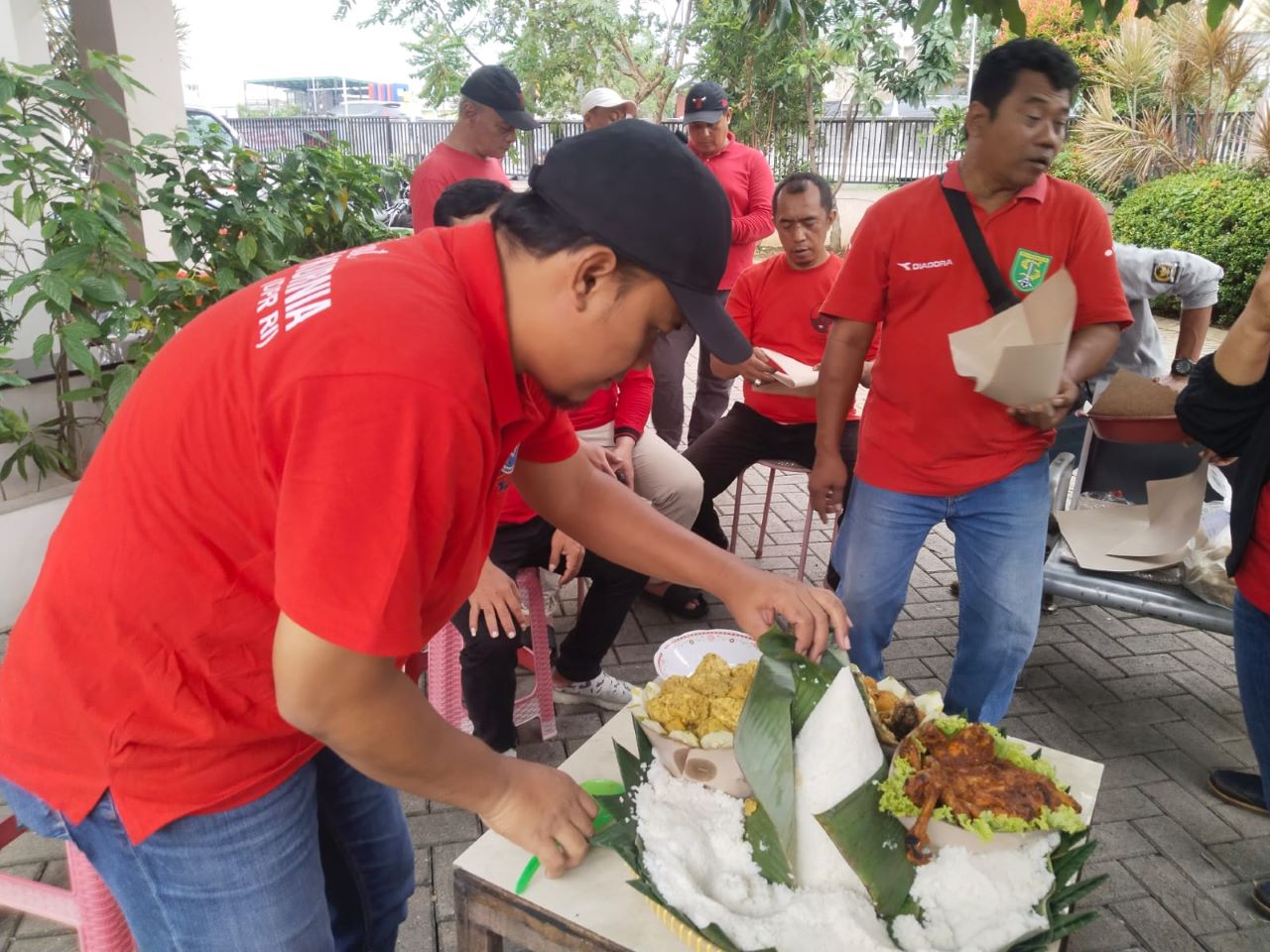 TUMPENGAN mengakhiri kerja bakti, penanaman pohon, pelepaskan ikan di lingkungan Taman Asri Utara Pondok Tjandra Indah, Waru, Sidoarjo.--Dokumentasi Rumah Aspirasi Indah Kurnia