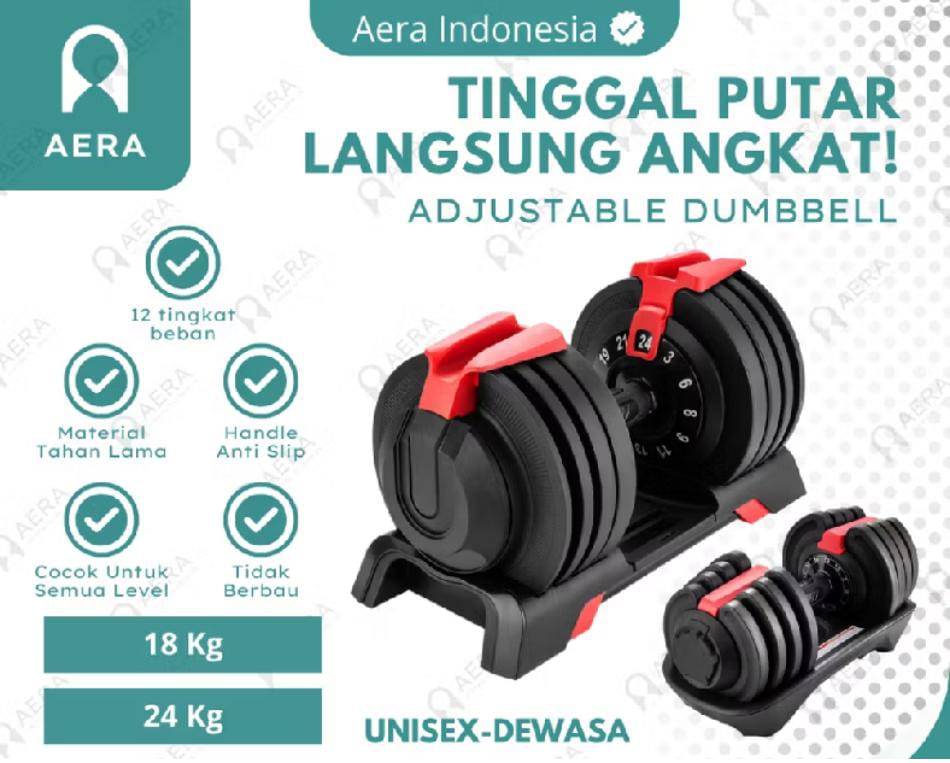 AERA menawarkan adjustable dumbbell 24kg yang simpel. -aera.indonesia-shopee