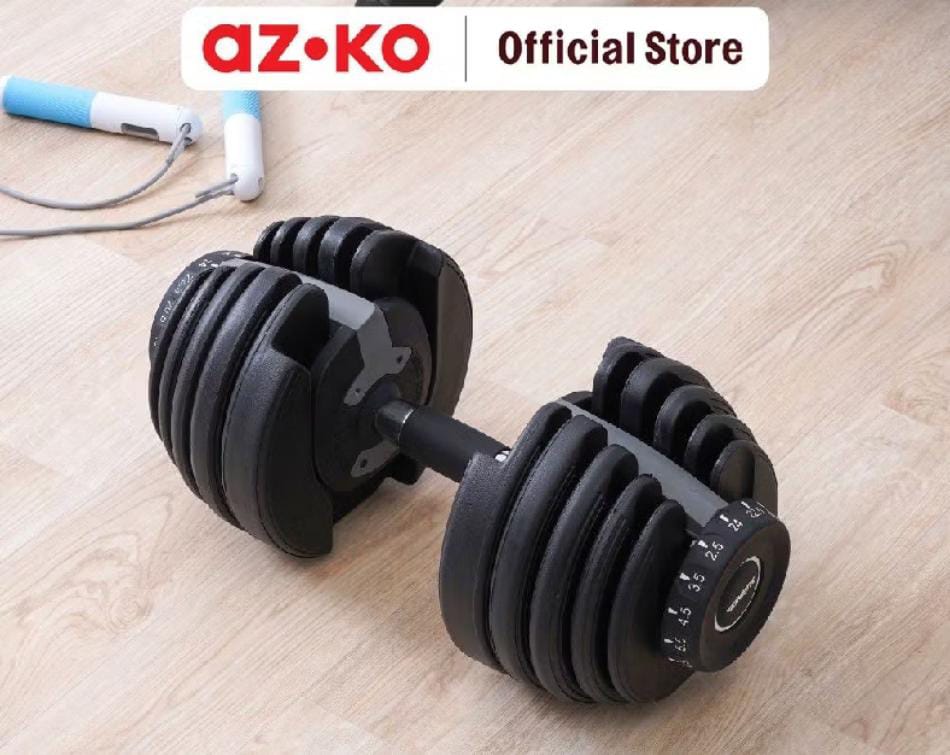 Azko Kinetic Adjustable hadir dengan tampilan minimalis dan sistem pengaturan beban lewat putaran di sisi dumbbell.