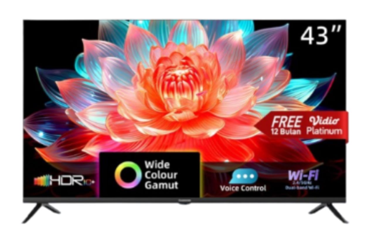Dengan layar 43 inci beresolusi Full HD, Google TV resmi, serta dukungan audio yang tergolong lantang, Polytron sering dijumpai di kisaran Rp2,8 juta saat promo.