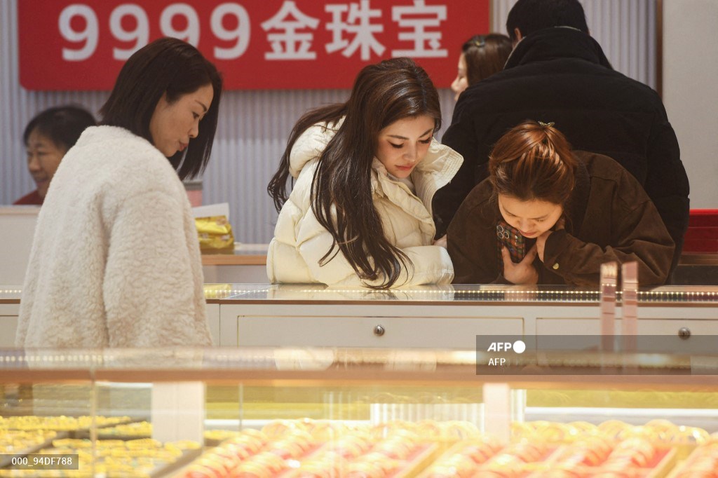 KONSUMEN EMAS memilih perhiasan di sebuah toko di Hangzhou, Provinsi Zhejiang, Tiongkok, 29 Januari 2026. Harga emas juga cenderung meroket.-Istimewa-