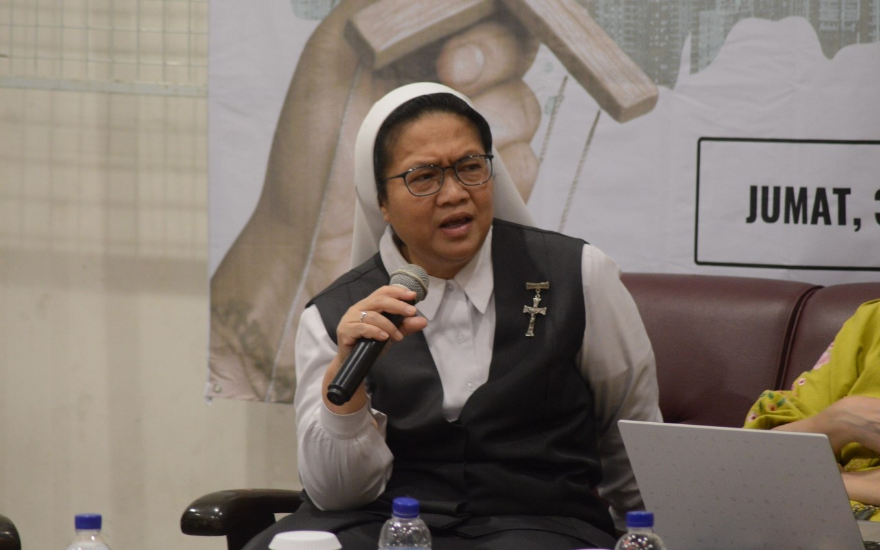 SUSTER VERONICA menyampaikan pendapatnya atas buku Broken String: Fragments of A Stolen Youth yang ditulis Aurelie Moeremans. -Raden Khansa-Harian Disway