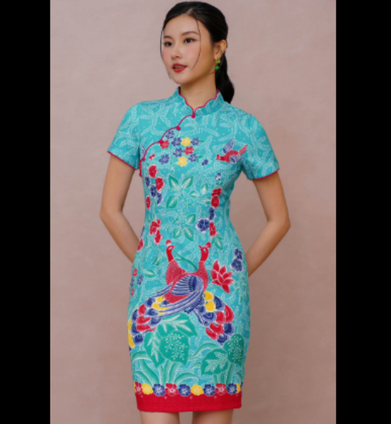 Perpaduan batik dengan siluet qipao menciptakan kesan elegan dan berbeda. Kombinasi itu memberi nuansa lokal tanpa menghilangkan identitas Tionghoa.
