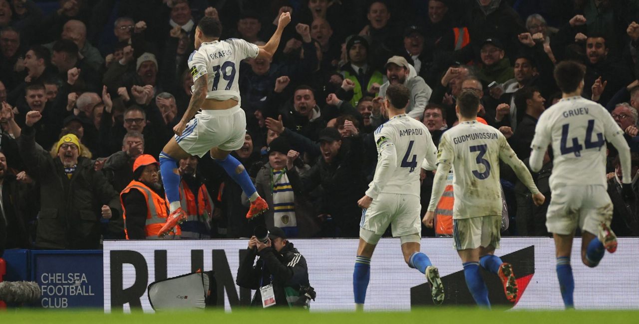 Selebrasi Noah Okafor usai samakan kedudukan Leeds lawan Chelsea (2-2) dalam laga Premier League 2025/2026 matchday ke-26, Rabu 11 Februari 2026--Getty Images