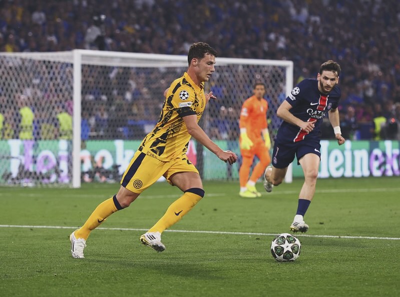 Momen Benjamin Pavard ketika masih berseragam Inter Milan dalam final Liga Champions 2025 kontra PSG.--Instagram @benpavard21