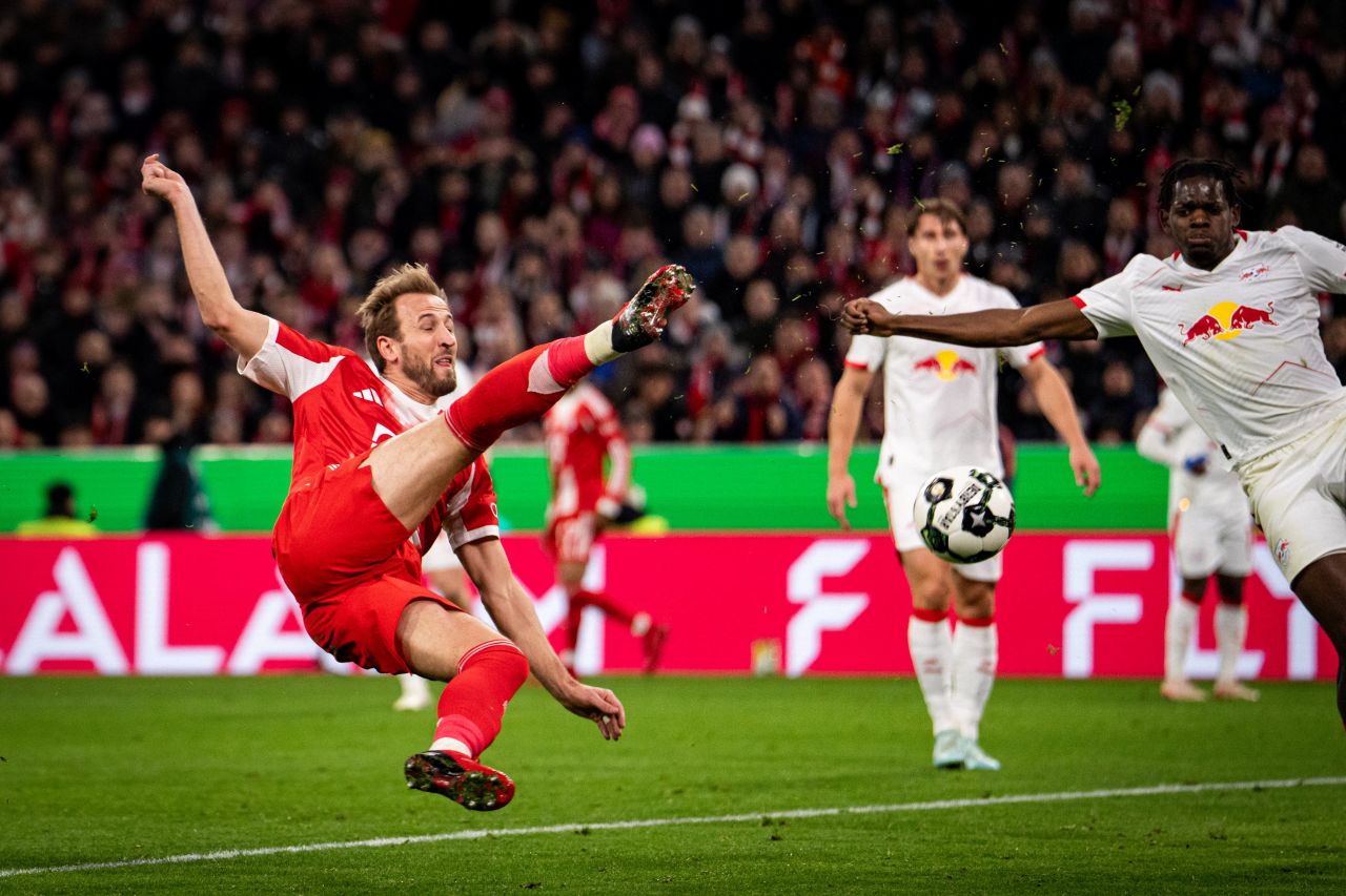 Aksi Harry Kane (kiri) dalam laga Bayern Munchen vs RB Leipzig, lanjutan perempat final DFB Pokal 2025/2026, Kamis 12 Februari 2026--@FCBayern-X