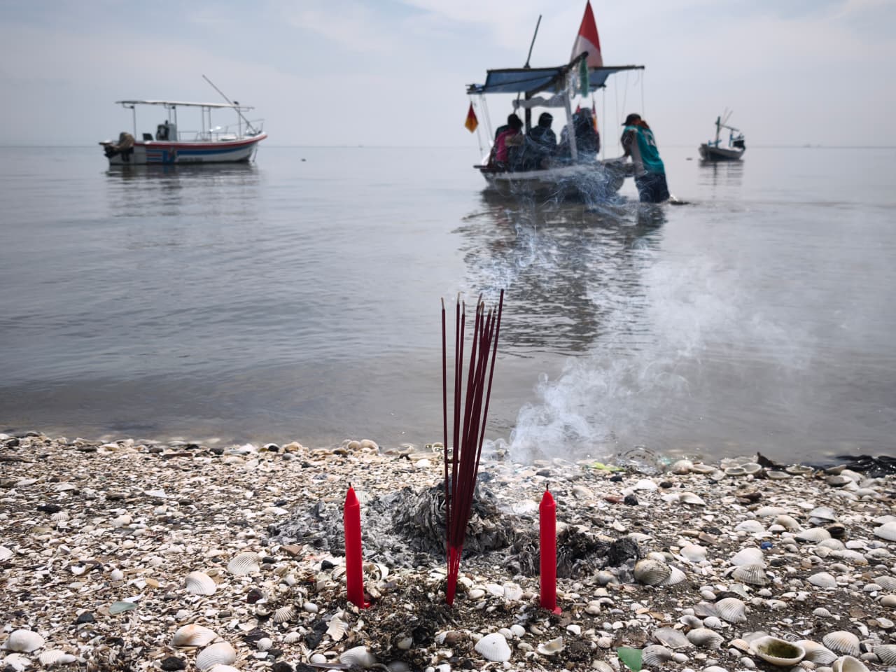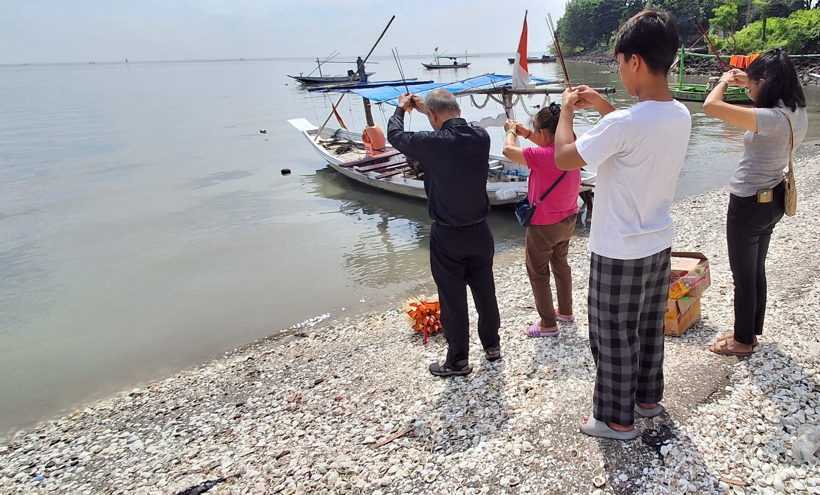 Perahu berhenti pada titik yang dituju. Mesin dimatikan. Hening sejenak. Lantas, Xs. Liem berjalan menuju haluan atau bagian depan perahu. Memanjatkan doa dengan tiga batang dupa.