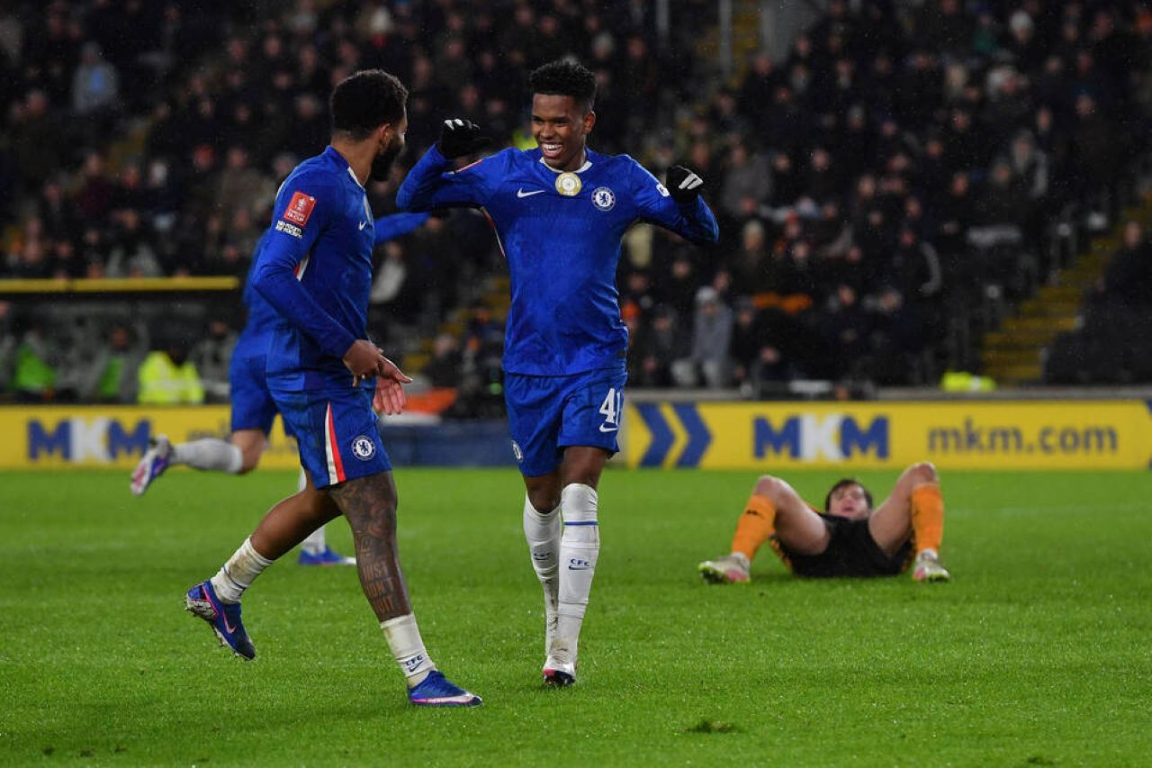 Selebrasi Estevao usai buat Chelsea unggul 3-0 atas Hull City dalam laga FA Cup ronde ke-4, Sabtu 14 Februari 2026--IMAGO