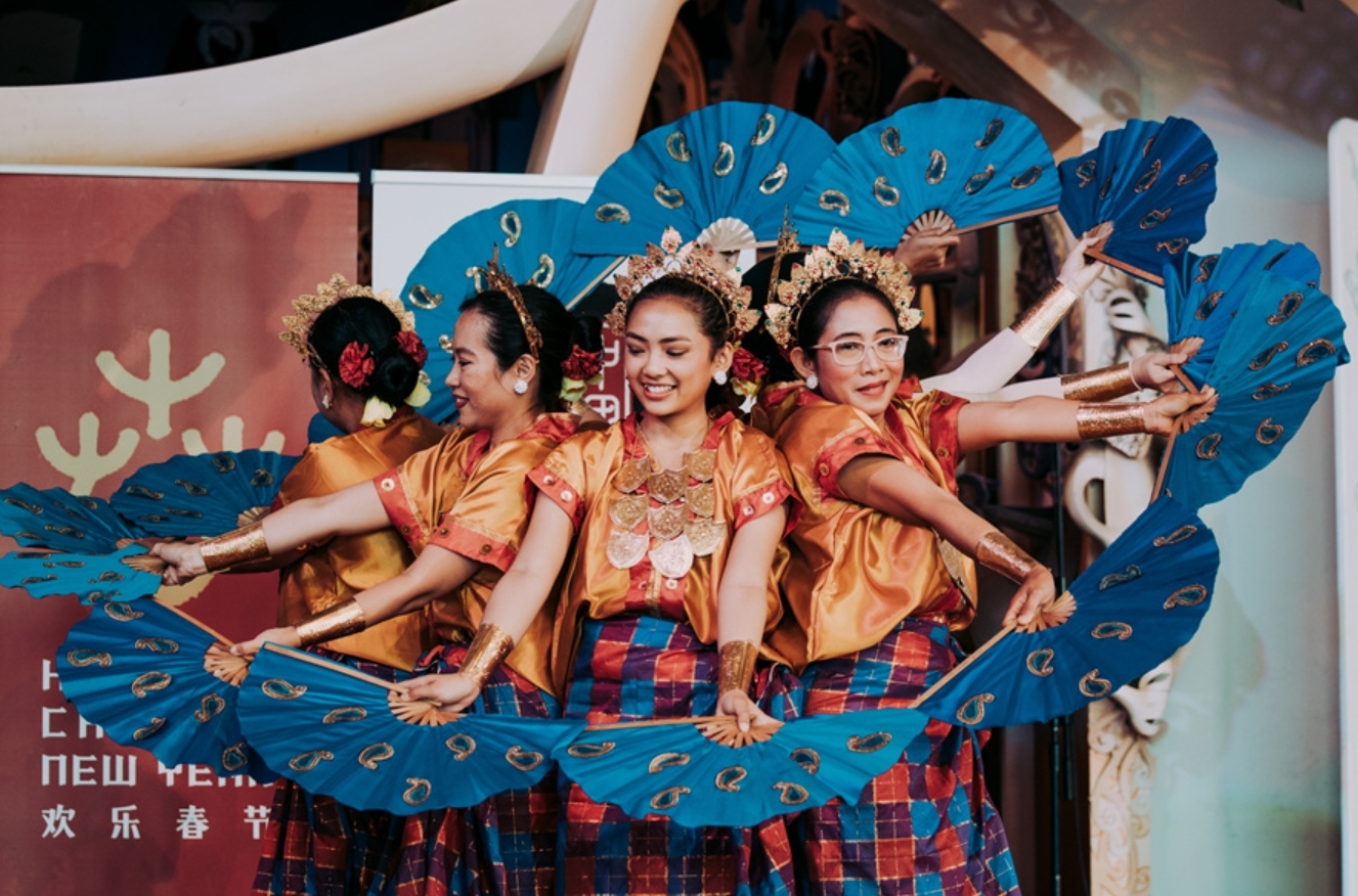 Demikian pula dengan pemasangan dekorasi kaligrafi Tahun Baru. Juga pertunjukan barongsai serta tarian naga.