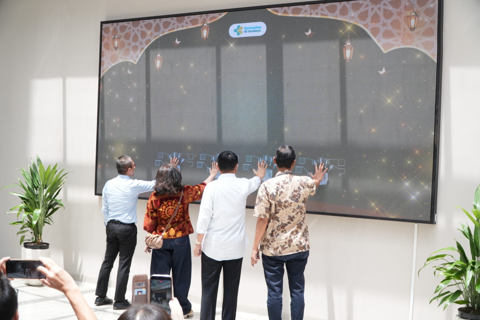 Sambutan dilanjutkan dengan ceremonial push button di layar videotron oleh Martha dan jajaran direksi RS Kemenkes Surabaya lainnya.
