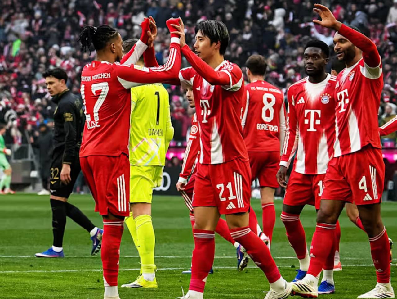Selebrasi Hiroki Ito dan Michael Olise usai buka keunggulan bagi Bayern Munchen atas Augsburg dalam laga Bundesliga matchday ke-19, Sabtu 24 Januari 2026--FCBayern.com