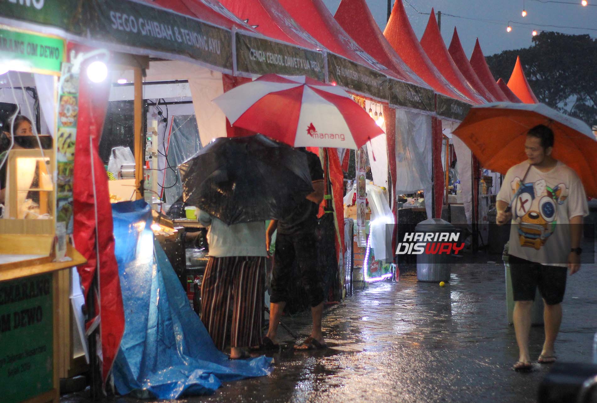 Suasana war takjil. Saat hujan pun masyarakat tetap antusias. -Alfi Kirom-