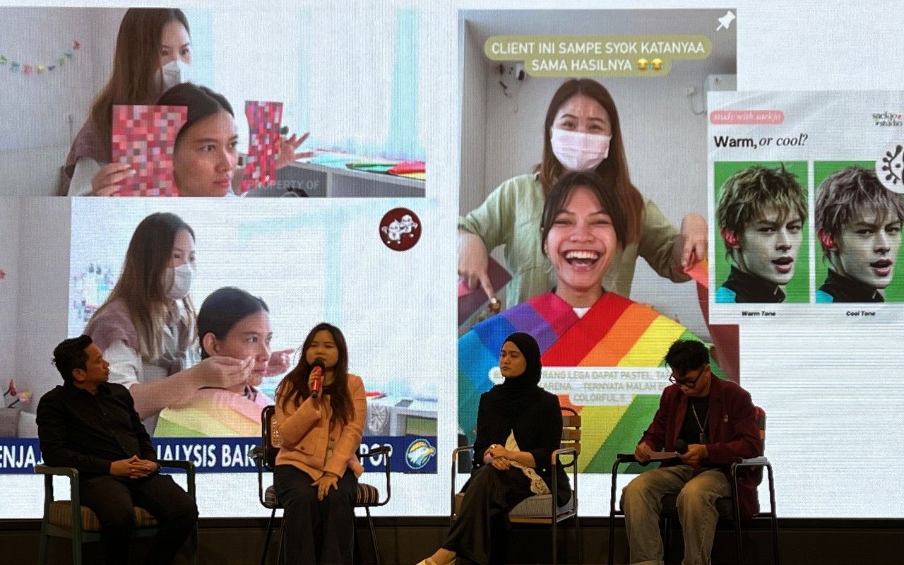 Lewat Alumni Talk Beyond Design, Mahasiswa Universitas Ciputra Surabaya Diajak Menyusun Arah Karier Kreatif Foto: Saat Monica memaparkan terkait bagaimana colour analysis-Saffanah Indah Fitrizahrani-Harian Disway