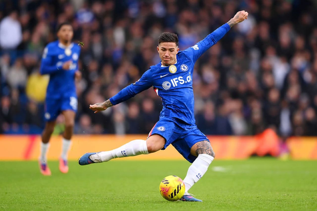Aksi Enzo Fernandez dalam laga Chelsea vs Burnley, lanjutan Premier League 2025/2026 matchday ke-27, Minggu dini hari, 22 Februari 2026-Harriet Lander-Getty Images