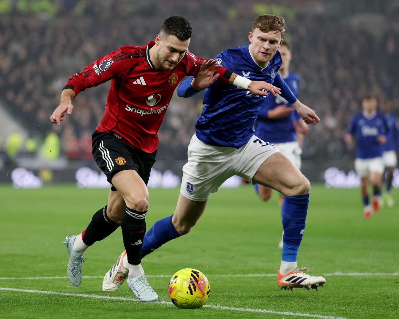 Setelah itu, gantian Amad Diallo yang melepaskan tembakan, memaksa kiper Everton Jordan Pickford melakukan penyelamatan gemilang. Diogo Dalot juga menguji Pickford lewat sepakan keras dari sudut sempit yang berhasil ditepis sang kiper.