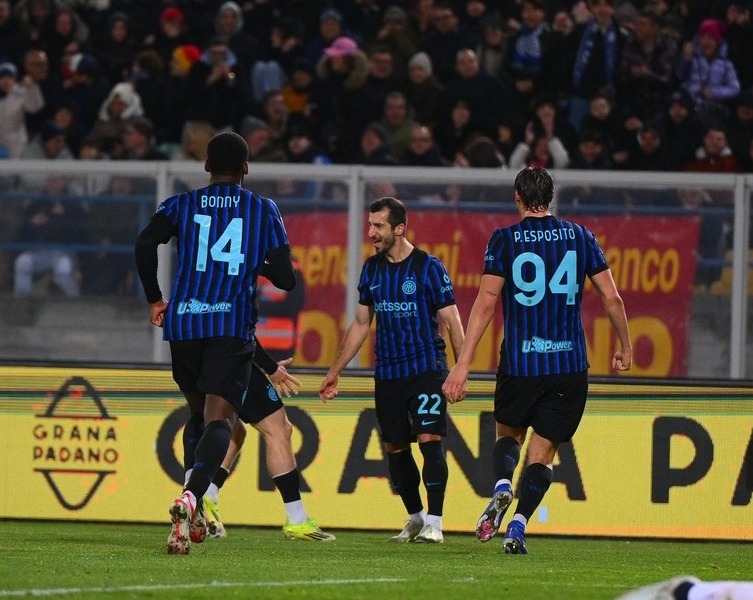Para pemain Inter Milan merayakan gol yang dicetak oleh Henrikh Mkhitaryan (tengah) dalam laga kontra Lecce. Minggu, 22 Februari 2026.--Instagram @inter