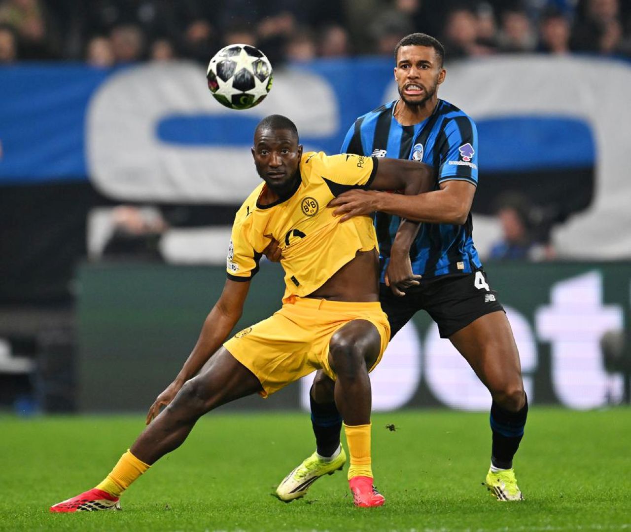 Duel Serhou Guirassy (kiri) dan Isak Hien (kanan) dalam Atalanta vs Dortmund, leg kedua playoff 16 besar Liga Champions 2025/2026, Kamis 26 Februari 2026--Uefa.com