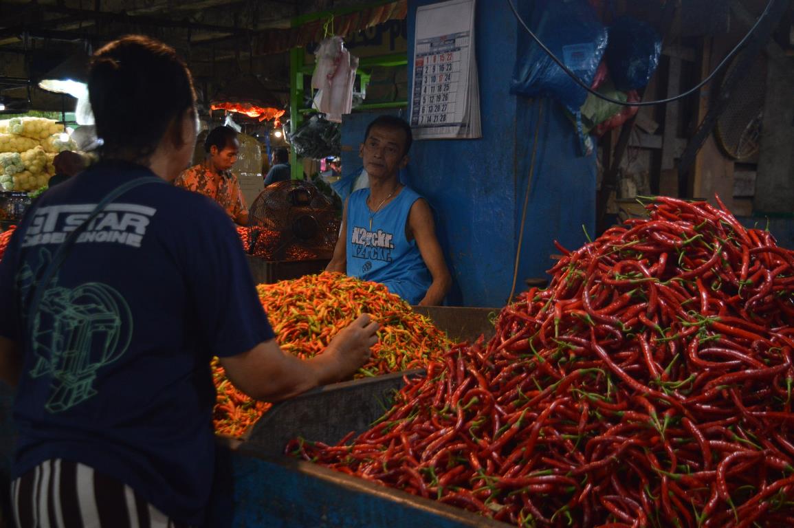 TRANSAKSI JUAL BELI di lapak pedagang cabai di Pasar Keputran, Surabaya.-Raden Khansa-Harian Disway-