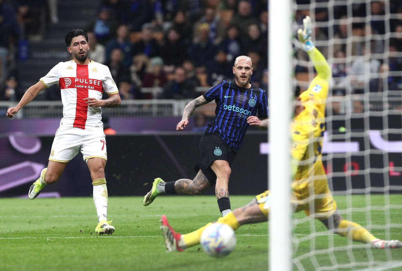 Gol Federico Dimarco buka keunggulan Inter Milan atas Genoa dalam laga Serie A 2025/2026 giornata ke-27, Minggu 1 Maret 2026-2--@SerieA-X