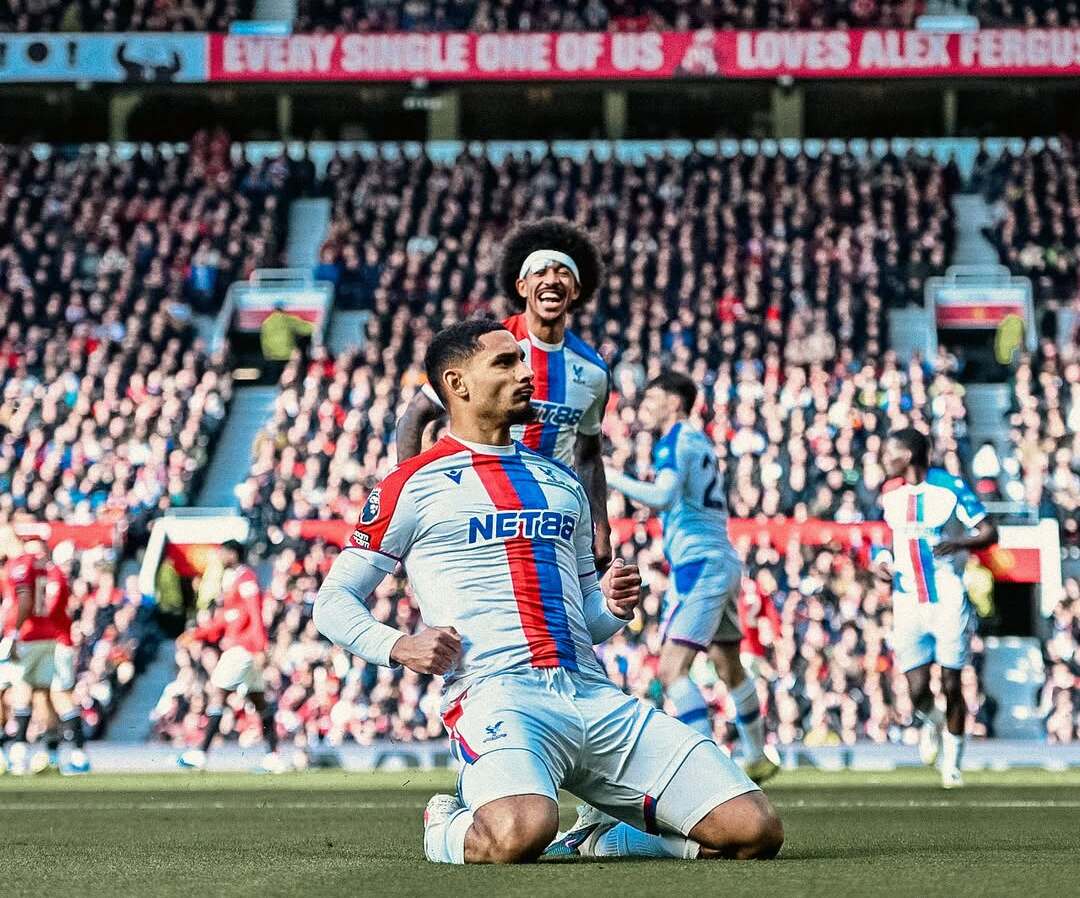 Selebrasi bek Crystal Palace, Maxence Lacroix, usai mencetak gol pembuka dalam laga menghadapi Manchester United. Minggu, 1 Maret 2026.--Instagram @cpfc