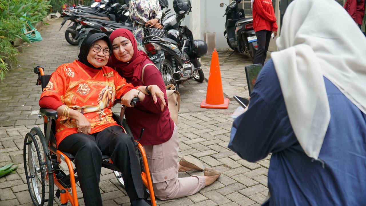 Di halaman tengah Kantor Harian Disway, Abah sesekali menyapa para peserta senam. Ia juga terus menebarkan senyuman. Dari pinggir lapangan, Napsiah beberapa kali melayani foto bersama para peserta senam.