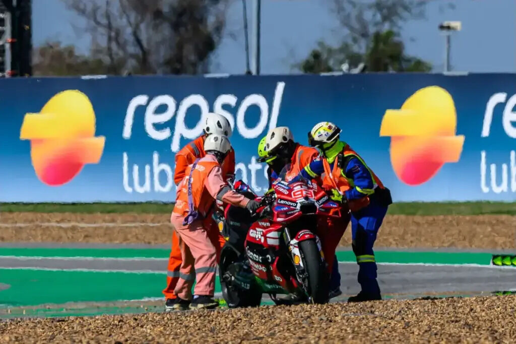 Berdasarkan pengakuan Marc Marquez, ia sedikit melebar di Tikungan 4 dan memilih mengambil jalur luar. Satu kesalahan kecil di tikungan tersebut ternyata berakhir fatal secara teknis.