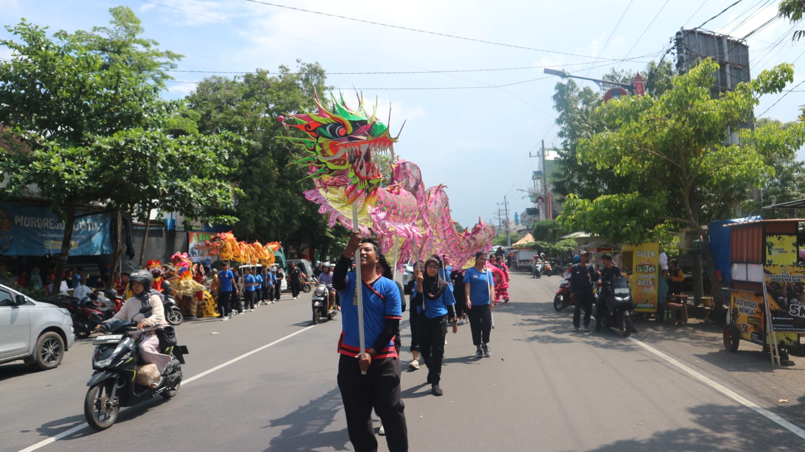 Liong-liong ketika melintasi Jalan Mawar, Blitar, dalam Kirab Barongsai, 3 Maret 2026.-Guruh D.N.-Harian Disway