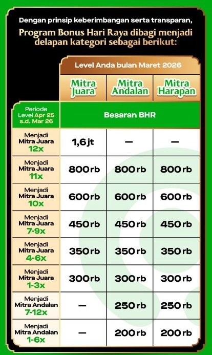 “Bonus Hari Raya ini adalah bentuk apresiasi atas kontribusi mitra dalam menjaga kualitas dan keandalan layanan selama 12 bulan terakhir, dengan tetap mempertimbangkan kemampuan perusahaan,” kata Hans.