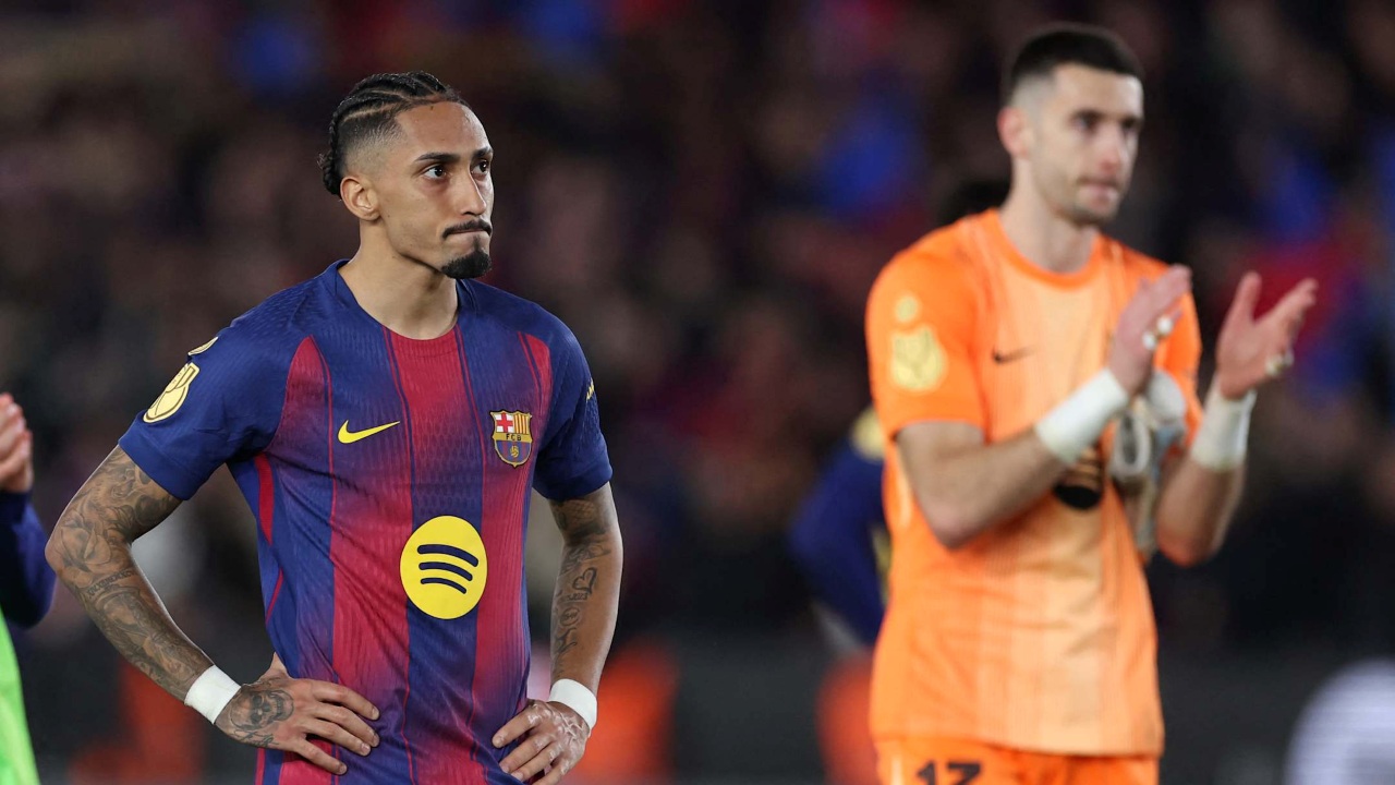 Raphinha (kiri) seusai Barcelona gagal melaju ke final Copa Del Rey dan disingkirkan Atletico Madrid (Agg 3-4), Rabu 4 Maret 2026-Josep Lago-Getty Images