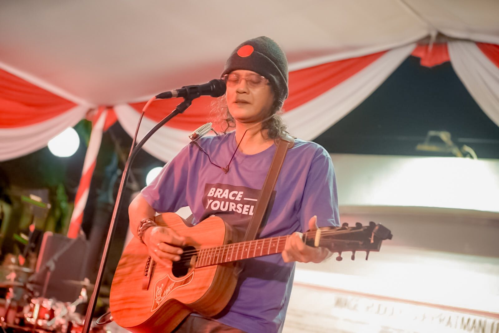 Cep Ocim, musisi yang tinggal di Serang, Banten, hadir dalam Hari Musik Nasional. Ia pun tampil pada penghujung acara dan membawakan lagu-lagu karya Gombloh.-Wahyu Suhendra-