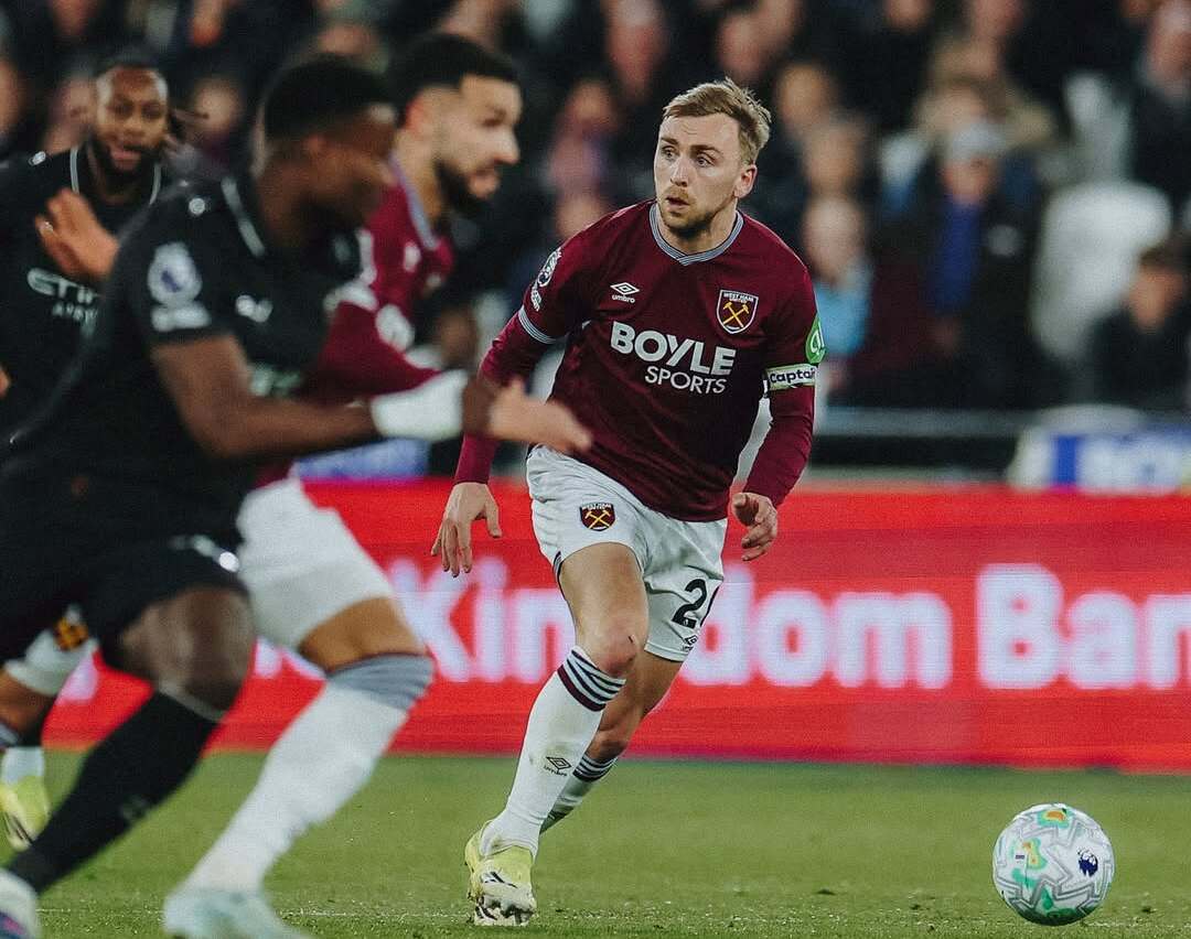 Aksi penyerang sekaligus kapten West Ham United, Jarrod Bowen, ketika melancarkan serangan dalam laga menghadapi Manchester City. Minggu, 15 Maret 2026.--Instagram @westham