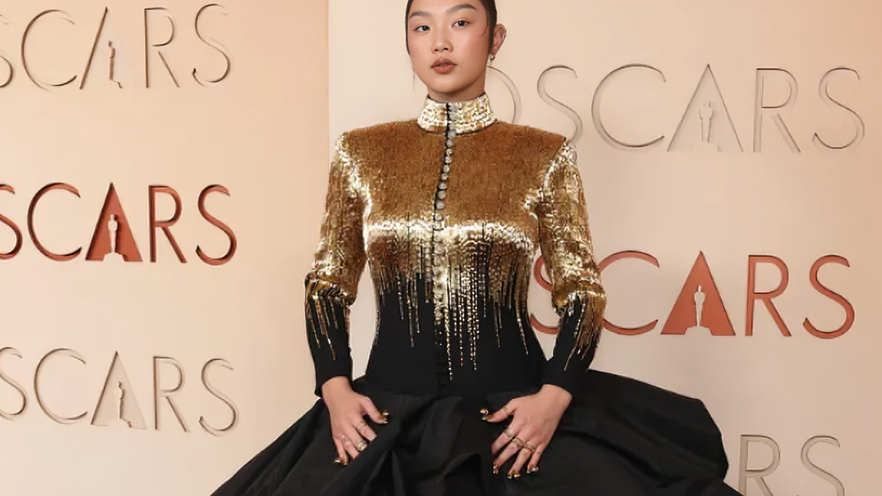 Arden Cho mencuri perhatian saat melakukan debutnya di red carpet Oscar berkat gaun couture koleksi Spring 2026 dari desainer Korea Miss Sohee. Gaun strapless hitam dengan detail lace dan fishnet transparan memberikan kesan dramatis sekaligus elegan.