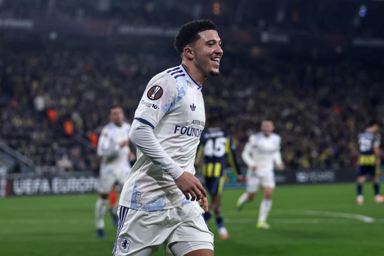 Selebrasi Jadon Sancho usai buka keunggulan bagi Aston Villa atas Fenerbahce dalam laga Liga Europa 2025/2026 matchday ke-7, Jumat 26 Januari 2026--Uefa.com