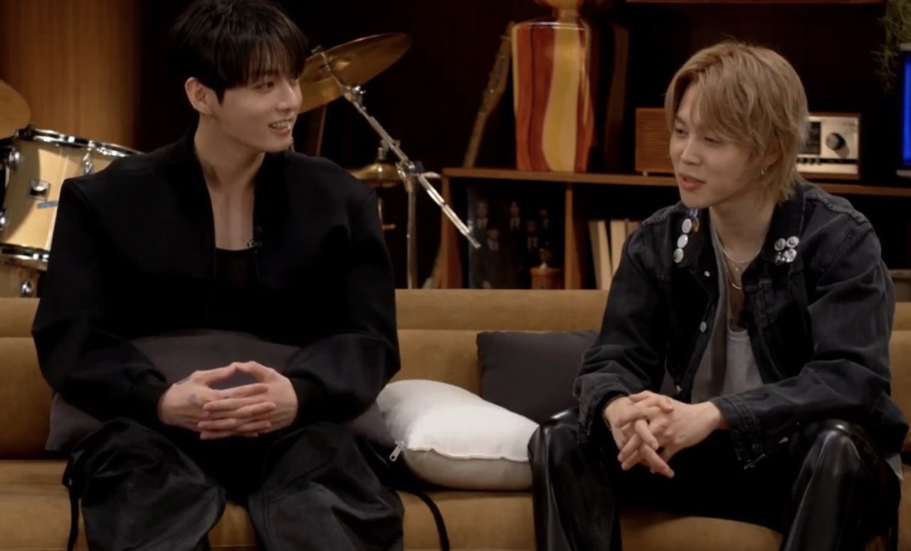 7 cerita BTS tentang ARIRANG, dari keterlibatan Jin sampai track favorit member. Foto: Jimin dan Jungkook dalam BTS Studio Notes, 20 Maret 2026. -BigHit Music-