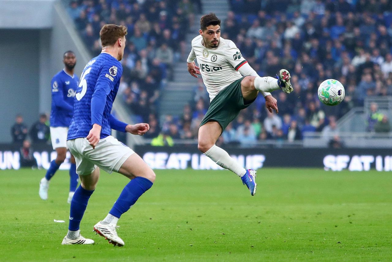 Aksi Pedro Neto (kanan) dalam laga Everton vs Chelsea, lanjutan Premier League 2025/2026 matchday ke-31, Minggu 22 Maret 2026-Luke Williams-Shutterstock
