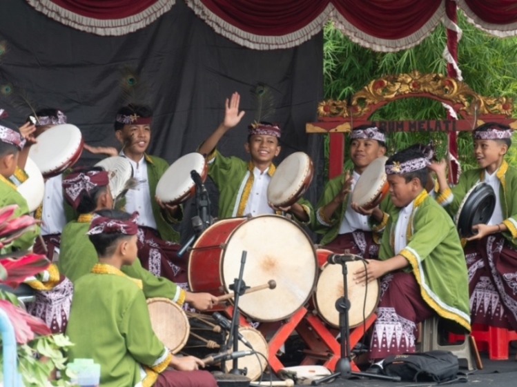 GAMELAN mengiringi arak-arakan Barong Ider Bumi di Desa Kemiren, Kecamatan Glagah, Kabupaten Banyuwangi.--Fifin Maidarina untuk Harian Disway