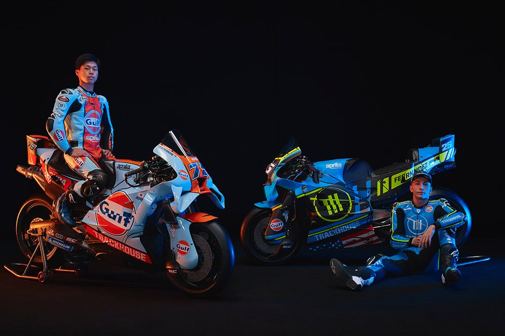 Tim satelit Aprilia Trackhouse Racing, saat sesi peluncuran tim MotoGP 2026. Tim satelit asal Amerika Serikat itu sukses curi perhatian MotoGP 2026--Twitter Alessio Piana @AlessioPiana130